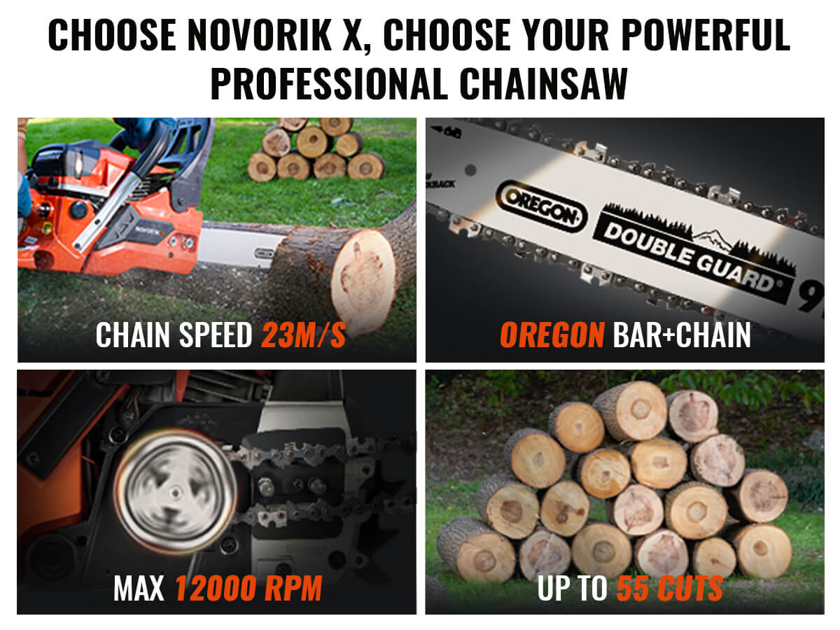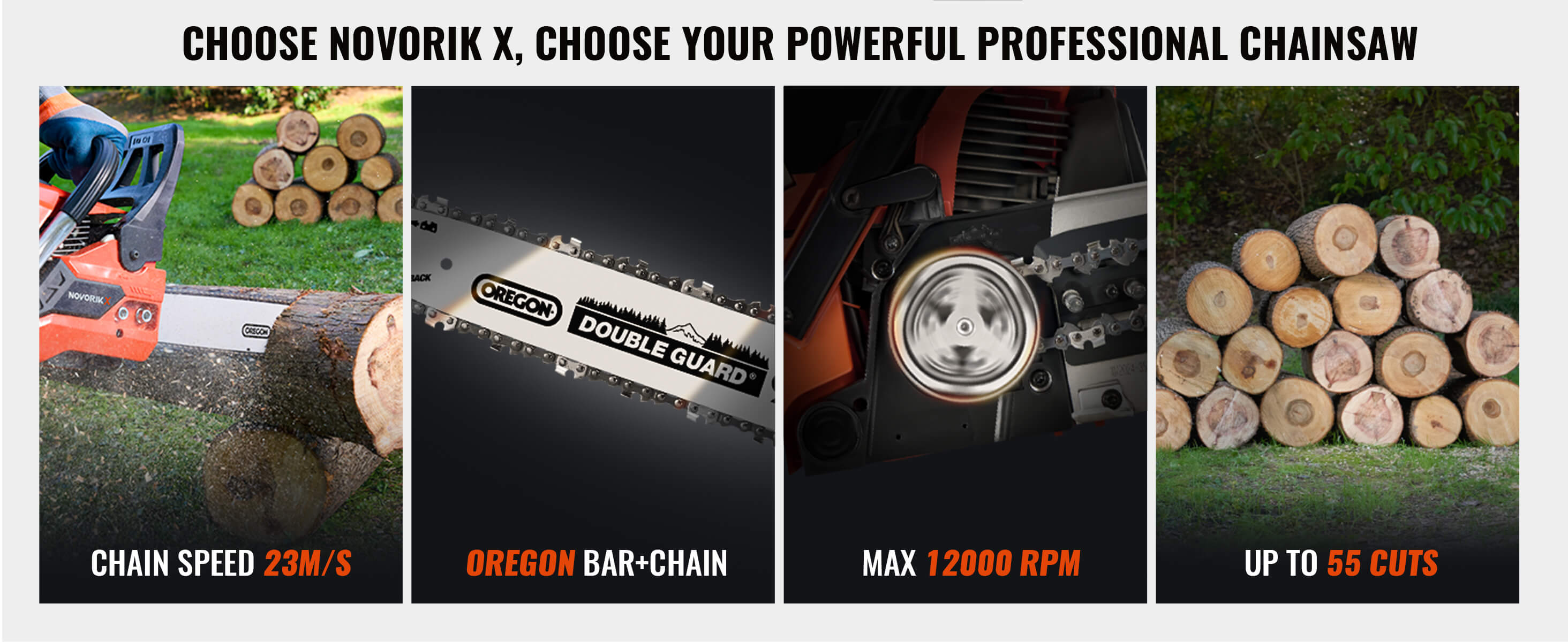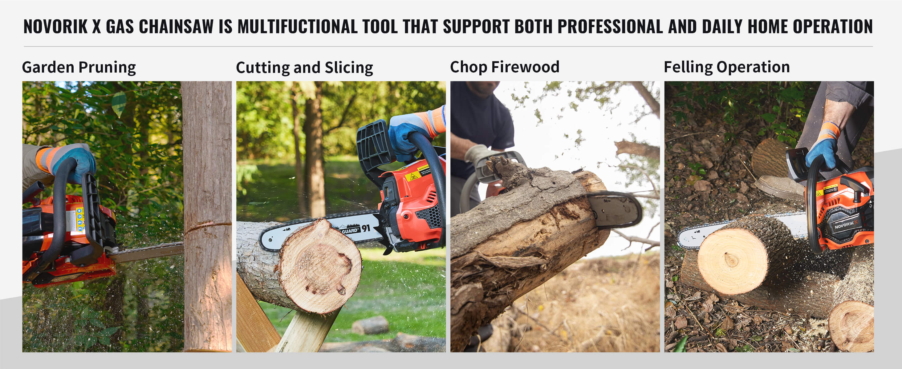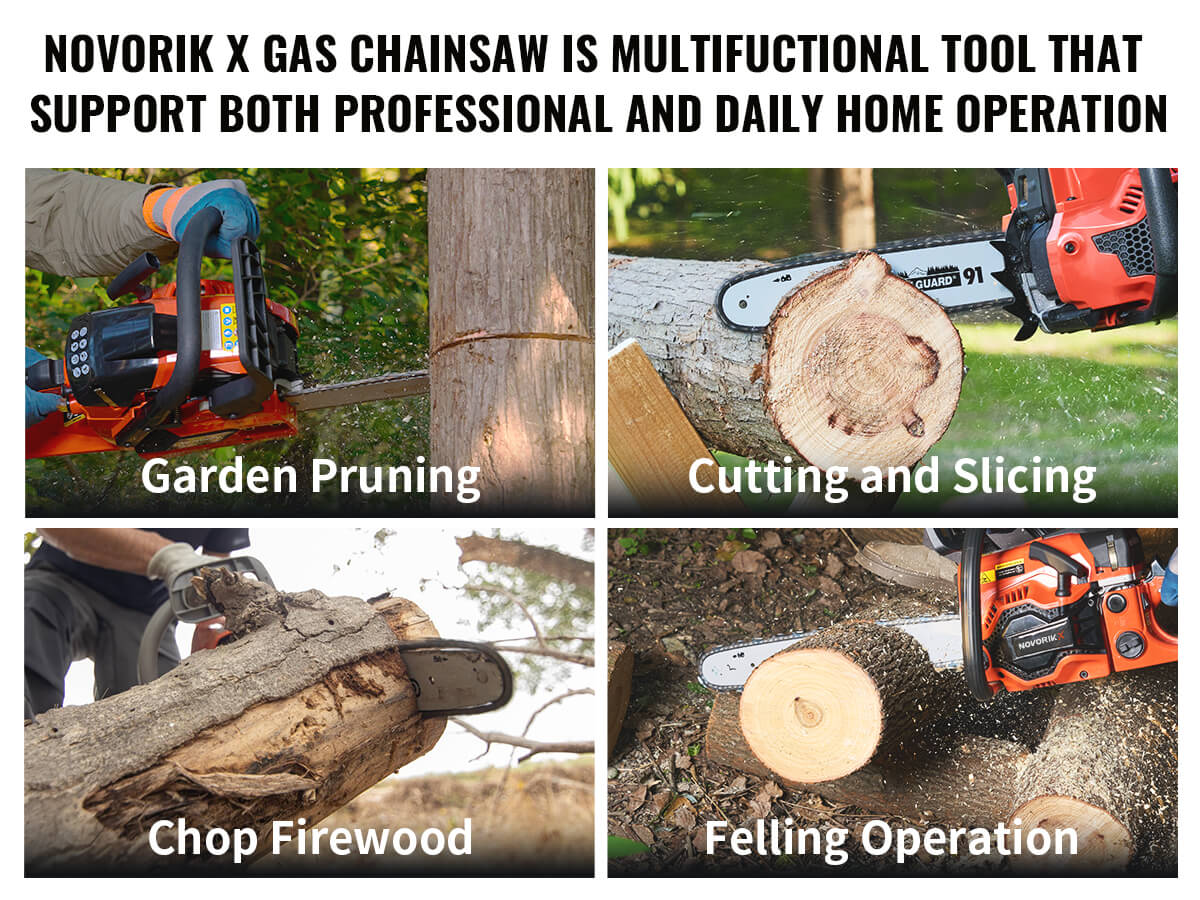 Equipped with a 45cc 2-Cycle 2.3HP engine, this gas chainsaw delivers exceptional cutting power for all your outdoor needs. With a maximum speed of 12,000 rpm and a torque of 1.5NM, it ensures efficient performance, whether you're trimming branches or cutting logs. The lightweight design adds to its versatility, making it perfect for home and professional use.